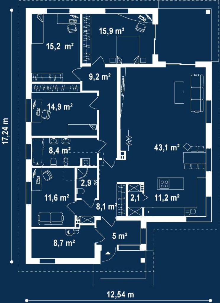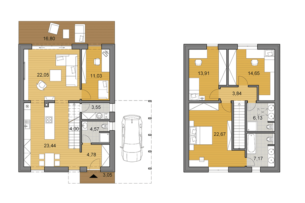 Proiect casă P+E (3 dormitoare) – Helios – 196 mp
